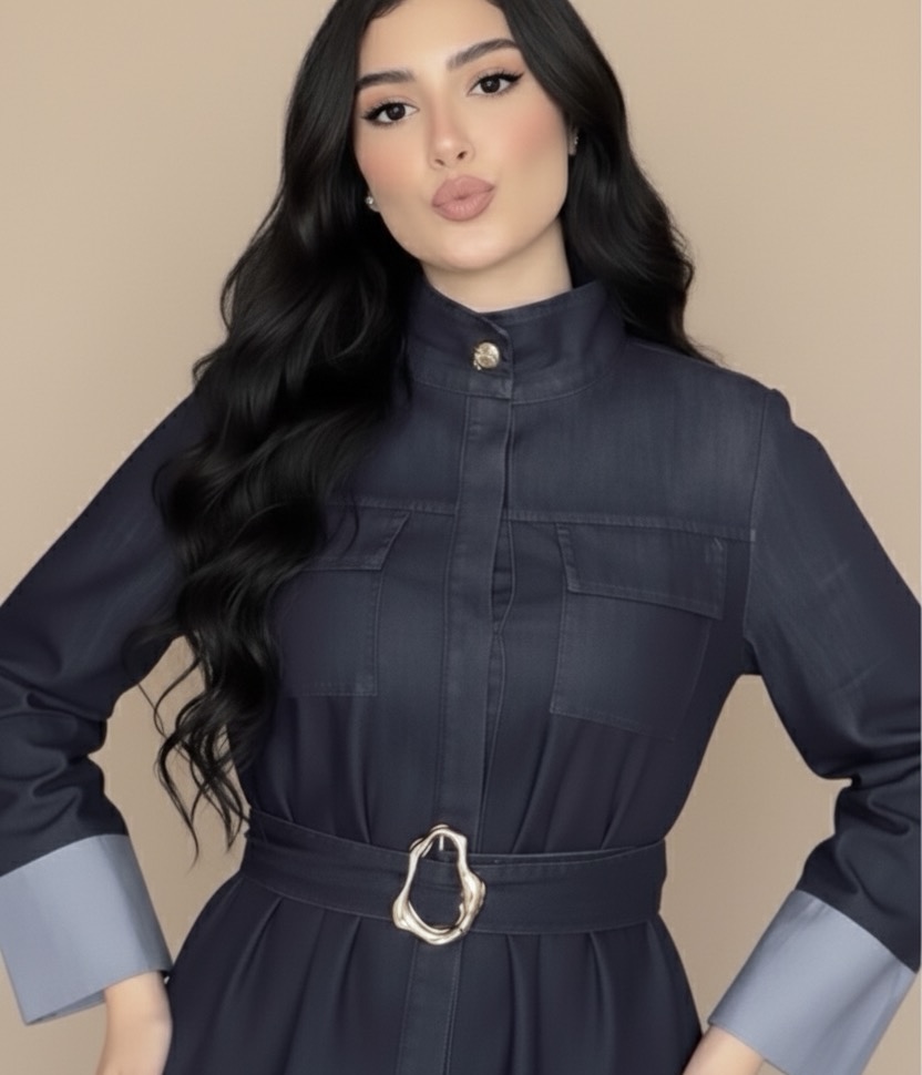 Un ensemble en denim élégant composé de deux pièces : Une surchemise en jean, pensée avec une ceinture double-face pour marquer la taille, avec boucle en acier inoxydable pour une touche moderne et durable.Les manches à revers apportent une finition raffinée et tendance. Un pantalon en denim, doté de deux…