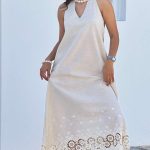 Robe longue fluide avec broderie, couleur beige claire (linen blend)