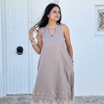 Robe écru Même coupe que notre fameuse robe en jean, mais version plus légère avec du lycra. Boutons dorés, fronces à la taille qui affinent la silhouette. Couleur claire, passe partout facile à porter.