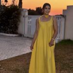 Robe longue fluide en jaune, avec 4 fleurs démontables . Taille standard (s, m et L)