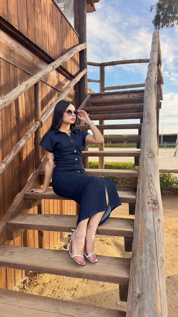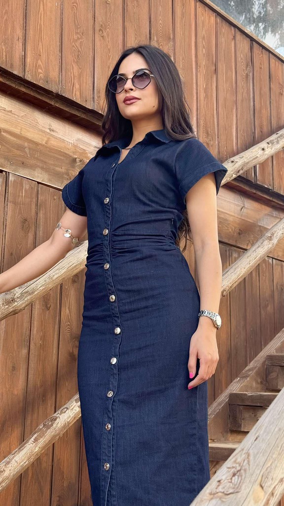 Robe en jean contient de lycra ,avec des fronces au niveau de la taille .