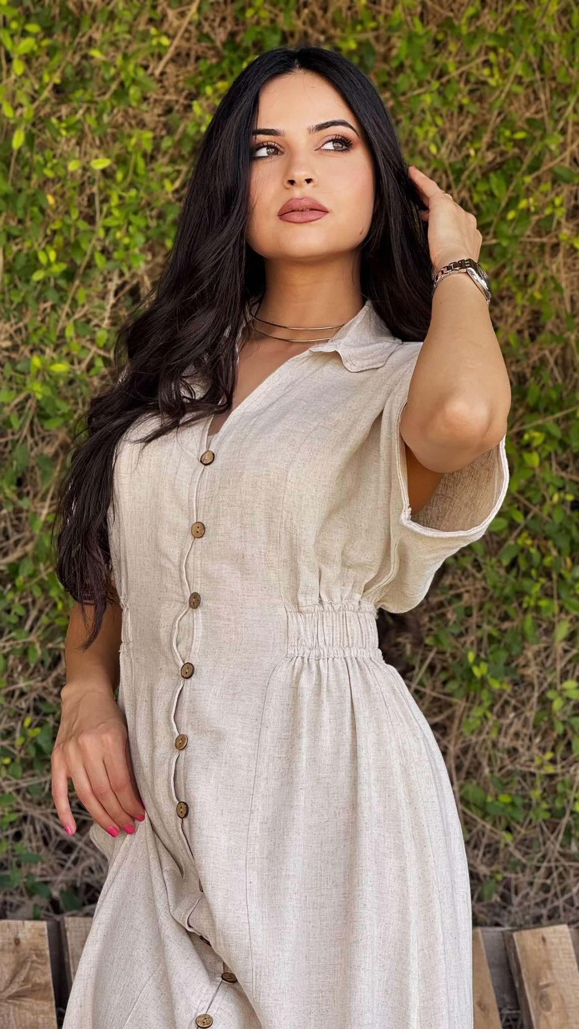 Robe Beig à rayures effet lin