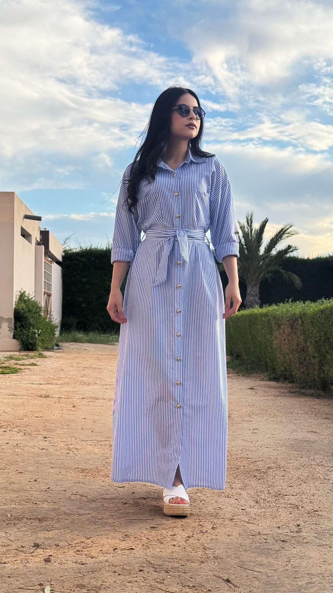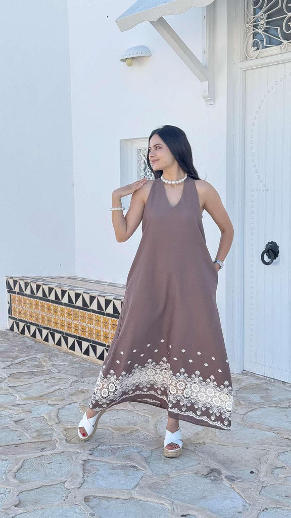 Robe longue fluide avec broderie (Linen Blend)