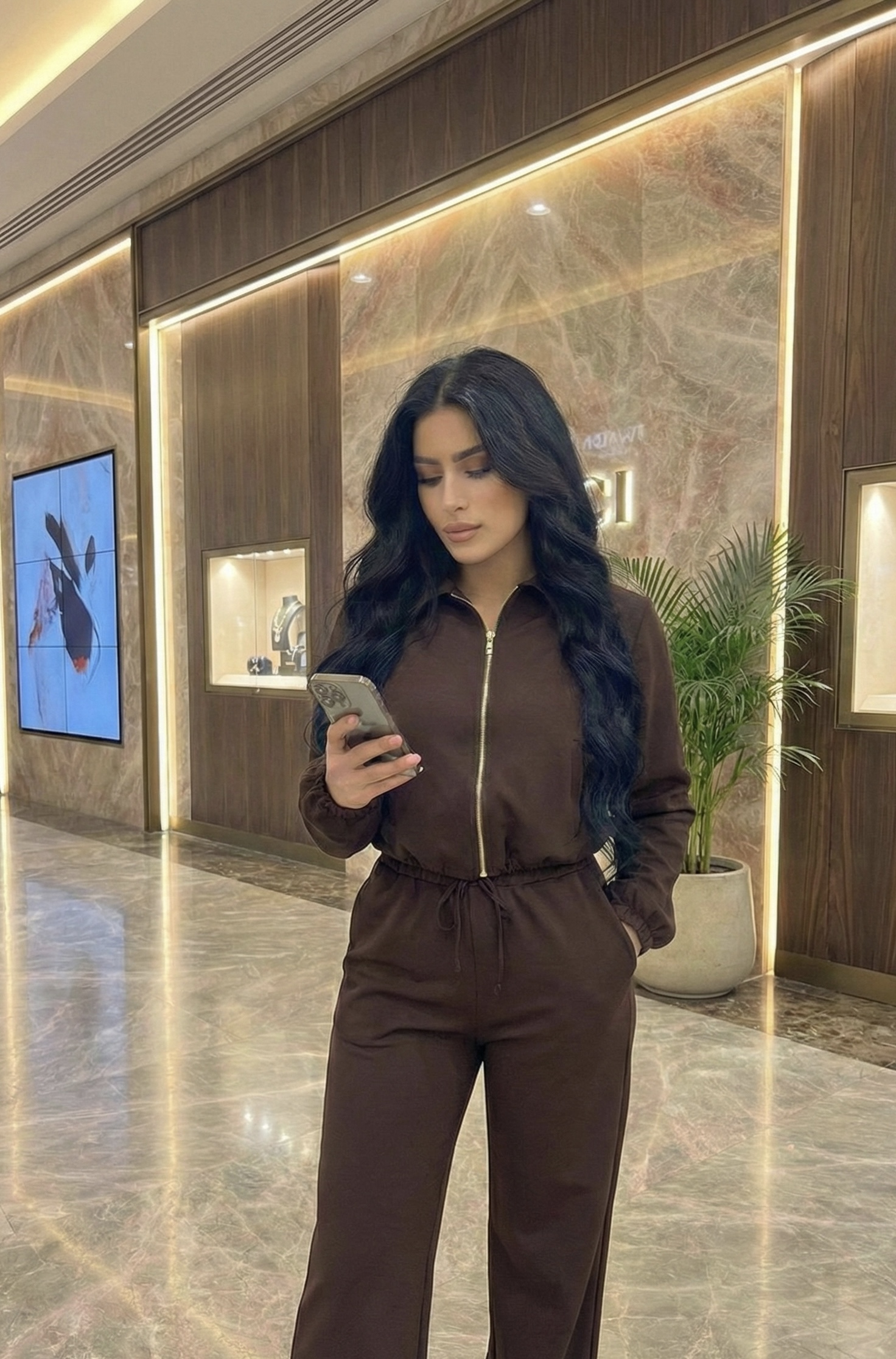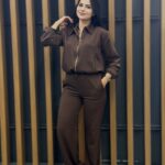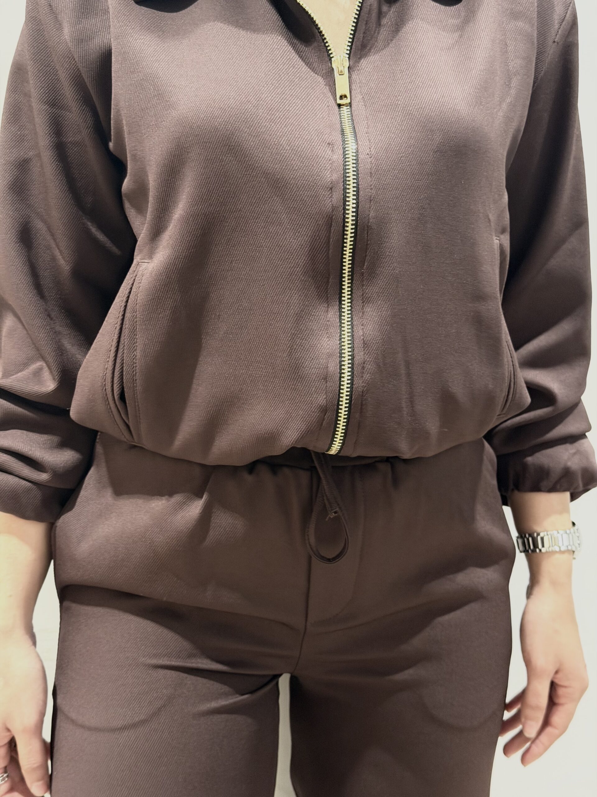 Set sport chic en Marron avec fermeture en doré ( 2 pieces) Tissue crepe