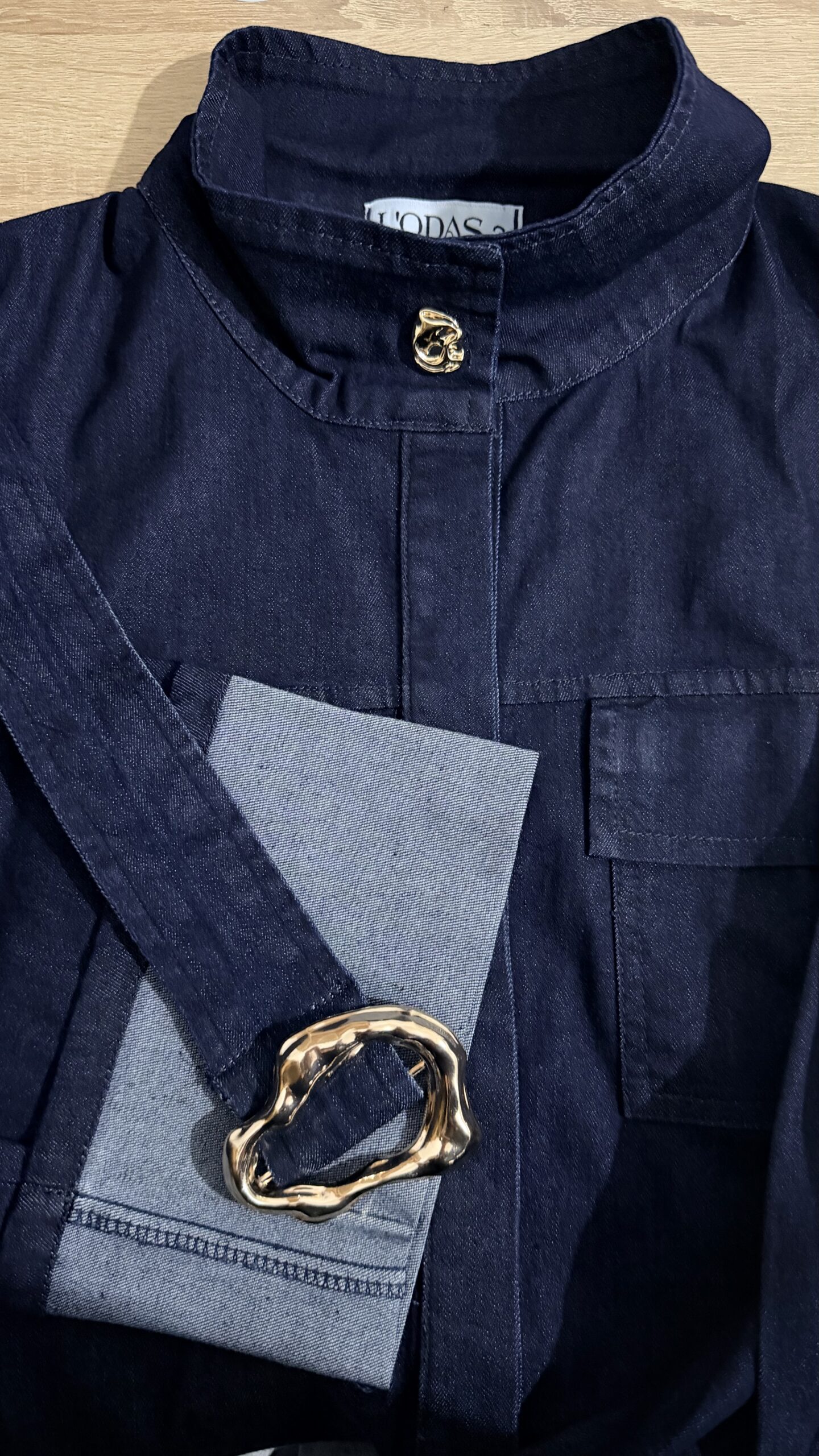 • Une surchemise en jean, pensée avec une ceinture double-face pour marquer la taille, avec boucle en acier inoxydable pour une touche moderne et durable.